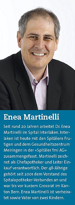 «Spitäler scheuen Aufwand, um Kosten zu senken.» Dieser Vorwurf sorgte in den letzten Wochen in den Medien für Schlagzeilen. In diesem Zusammenhang regt Dr. Enea Martinelli, Chefapotheker und Leiter Einkauf im Spital Interlaken, Importe aus dem Ausland an. Wo die Schwierigkeiten und Vorteile im Parallelimport liegen und wo in den Spitälern Geld gespart werden kann, erklärt der 48-Jährige im Interview.