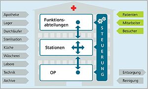 Neben dem wirtschaftlichen Betrieb sind Fallzahlsteigerungen und effiziente Prozesse Erwartungen an einen Spitalneubau. Ebenfalls eröffnen Neubau- und Umbauprojekte die Chance für neue Konzepte und optimierte Betriebsabläufe, welche mit den neuen baulichen Strukturen zu harmonisieren sind. Somit bildet die bauliche Struktur des Krankenhauses den Rahmen für die im späteren Betrieb stattfinden Prozesse und bestimmt erheblich die Leistungsfähigkeit sowie die laufenden Betriebskosten. Nicht ausreichend grosse Logistikflächen und unnötig lange Wege behindern oftmals den Betrieb und verhindern, dass neue Gebäude zu den gewünschten Leistungssteigerungen führen. Dennoch wird in der Bauplanung den Logistikprozessen häufig zu wenig Aufmerksamkeit geschenkt. Nachträgliche bauliche Anpassungen im laufenden Betrieb sind zeit- und kostenintensiv und durch eine frühzeitige Logistikplanung vermeidbar.